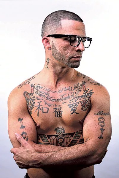 At the top of Locklear’s shoulders, you’ll see the words “grace” and “mercy,” two attributes that helped him years back when he was diagnosed with cancer. On his stomach, there’s a tribal eagle design that he says represents freedom and pays homage to his Native American roots.