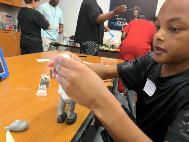 “We want to incorporate STEM wherever we can, to compliment what kids are doing in school,” Taylor said. “But also, this is something that isn’t in the average elementary school, so it’s an opportunity where it’s really a low barrier for families to come and experience a myriad of things, not just visual arts, but — as you are today experiencing claymation — different genres and experiences. I think it helps families help their kids find their creative identity.”