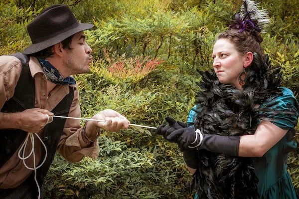 And so it is again in the lively, stylized version directed by Christian Casper, with Kate, Petrook and the whole shebang transplanted into the wild, wild West of the Arizona Territory, circa 1875. Yonder fish statuary has been outfitted with bandannas, but the Green’s frontier is otherwise untouched by set design. Luci Wilson takes on much of the burden of branding Charlotte Shakespeare’s production with the imprint of the thrilling days of yesteryear, providing a rich array of Western costumes.