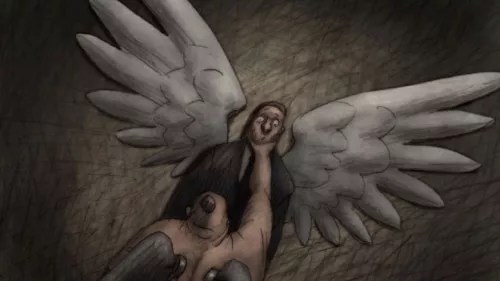 As their press release describes, “Idiots and Angels is Plympton’s newest animation and a cartoon-noir first. Angel is a selfish, abusive, morally bankrupt man who hangs out at his local bar, berating the other patrons. One day, Angel mysteriously wakes up with a pair of wings on his back. The wings make him do good deeds, contrary to his nature. He desperately tries to rid himself of the good wings, but eventually finds himself fighting those who view the wings as their ticket to fame and fortune.”