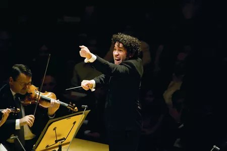 Gustavo Dudamel is an anomaly among symphony conductors, particularly those who have worn the mantle of greatness. Ferocity, transport, mighty jubilation, and above all else, gravitas have etched the lines on the imposing brows of the great Olympians. So what shall we do with Gustavo, who on the inaugural nationwide LA Phil LIVE broadcast struggled with the English language, self-mockingly fussed over his hair backstage before entering Walt Disney Concert Hall, and impishly covered the camera lens?