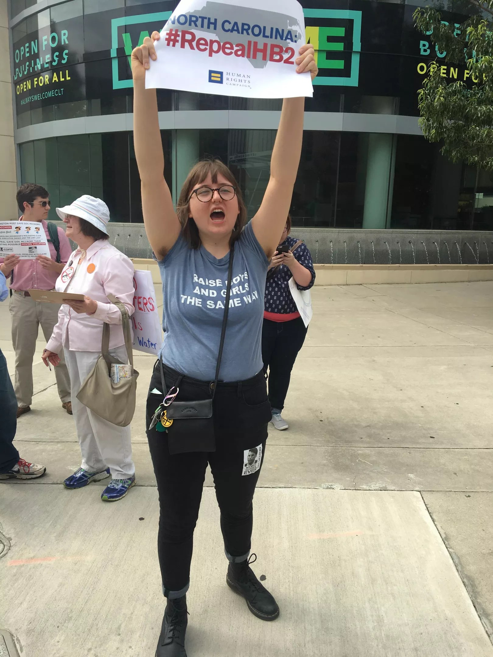 Roy Cooper and Pat McCrory, North Carolina’s two gubernatorial candidates, debated in Uptown Charlotte this morning for the first time, trading barbs on bathrooms, teacher pay and a few other things that have made McCrory’s tenure an absolute shitshow. Protesters set-up outside the Westin, where the debate occurred. A few gained access to the hotel but were quickly ejected as they made their presence known. (Ryan Pitkin)