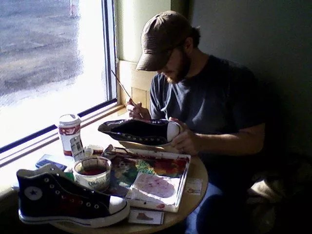 Local artist Gabriel Donaldson creates masterpieces for the feet at the Starbucks on Elizabeth Avenue. Donaldson’s hand-painted Converse shoes sell at $150-$300 at AmericanAthletics.com.