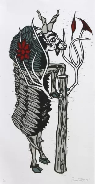Woodcut Prints by Dan Allegrucci with featured potter Ronan Peterson exhibition at Lark & Key Gallery