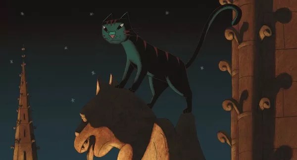 A CAT IN PARIS (2011). An Academy Award nominee this year for Best Animated Feature Film, this French import is a welcome (read: hand-drawn as opposed to CGI) movie that packs a lot of punch in its hour-long running time. Perhaps a more accurate title would have been A Cat, a Cat Burglar, a Little Girl, Her Detective Mom and a Gangster in Paris, as the slinky feline often feels like a peripheral character in his own saga (then again, he is the one who brings all the other characters together). The animal’s name is Dino, and while he’s the loving pet of little Zoe during the day, he takes off at night to embark on a series of robberies with an easygoing thief named Nico. Nico’s nocturnal activities draw the attention of Jeanne, Zoe’s mom and a dedicated detective, but Jeanne is actually more interested in nailing crime lord Victor Costa, the man responsible for her husband’s murder. Despite a protracted finale set atop the Notre Dame cathedral, the movie is breezy entertainment, boasted by some imaginatively designed sequences and a sly sense of humor (surely the henchman Monsieur Hulot is so named in honor of the great French comedian?).