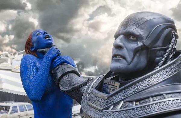 X-MEN: APOCALYPSE (2016). After the thrills of X-Men: First Class and X-Men: Days of Future Past, there’s a palpable letdown when it comes to X-Men: Apocalypse. That’s not to say there isn’t still plenty to enjoy in this outing, but the overriding sense is one of missed opportunities. The evildoer here is En Sabah Nur (Oscar Isaac), a mutant who made his presence known in Ancient Egypt but who has since been laying dormant. Awakened in the 1980s, he watches some TV, realizes humankind is a lost cause (presumably, he caught episodes of Joanie Loves Chachi and Who’s the Boss? to help him come to this conclusion), and decides to destroy the world in order to rebuild it. Aiding him in his global cleansing are Magneto (Michael Fassbender) and various teenage mutants; standing against him are Professor Xavier (James McAvoy), Mystique (Jennifer Lawrence), Beast (Nicholas Hoult) and more teenage mutants. As always, individual scenes offer some familiar faces (you-know-who turns up as a Weapon X of mass destruction) as well as some unexpected ones (The Breakfast Club represented!). And as in Days of Future Past, there’s some scene-stealing being perpetrated by Evan Peters as Quicksilver — director Bryan Singer returns to the same slo-mo well, but it still yields multiple chuckles. But all engaging activity comes to an abrupt halt whenever the dull En Sabah Nur (aka Apocalypse) takes center stage. Isaac is an excellent actor, but he can do little with a part as parched as this one. Glowering under buckets of gloppy blue makeup, he doesn’t seem to be playing a godlike figure capable of destroying the world as much as the sort of grumpy uncle who always complains at barbecues that there’s not enough mayonnaise in the cole slaw.