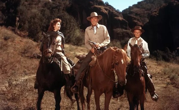 Despite its good-as-gold cast, Garden of Evil, directed by noir specialist and Western veteran Henry Hathaway (True Grit, The Sons of Katie Elder), has largely been forgotten over time, with many of the scribes who have bothered to catch it dismissing it as a talky, clunky oater. Yet I for one appreciate its unhurried pace and its willingness to let its characters gab instead of gun-fight. While hanging around a small Mexican village, three Americans (stalwart Gary Cooper, philosophical Richard Widmark, cowardly Cameron Mitchell) and one local (excitable Victor Manuel Mendoza) are hired by a woman (Susan Hayward) to travel through hostile country and rescue her husband (Hugh Marlowe), who’s been injured while searching for gold. The character dynamics are what make this tale interesting, and it’s never hard to watch these A-listers in their patented roles — Cooper as the voice of reason, Widmark full of wisecracks and wit, and Hayward exuding fiery independence.