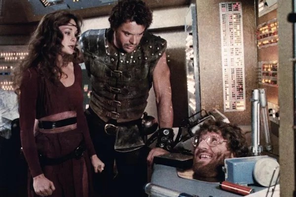 THE ICE PIRATES (1984). There are seemingly more gags than visual effects shots in The Ice Pirates, a campy sci-fi yarn that imported three popular actors from television to fill out the leading roles. Robert Urich (Dan Tanna on Vega$) stars as Jason, the leader of a ragtag galactic outfit making life difficult for the nefarious ruling class in a future where water is a rare commodity. Michael D. Roberts (Rooster on Baretta) plays Roscoe, his best friend and second-in-command. And Mary Crosby (she who shot J.R. on Dallas) is Karina, a princess who hooks up with Jason and his assemblage of lovable rogues. The jokey script is occasionally amusing but generally awful, but it’s difficult to hate a movie as puppy-dog harmless and eager to please as this one. The real fun comes in noting the supporting cast: future Prizzi’s Honor Oscar winner Anjelica Huston as the skilled Maida, future Hellboy Ron Perlman as Zeno, former NFL star John Matuszak as Killjoy, horror film veteran John Carradine as the Supreme Commander and, most startlingly, Bruce Vilanch, the Emmy-winning co-scripter of a dozen Oscar telecasts, as the Herod-like despot Wendon. For a far superior mix of science fiction and satire, just watch Mel Brooks’ Spaceballs again.