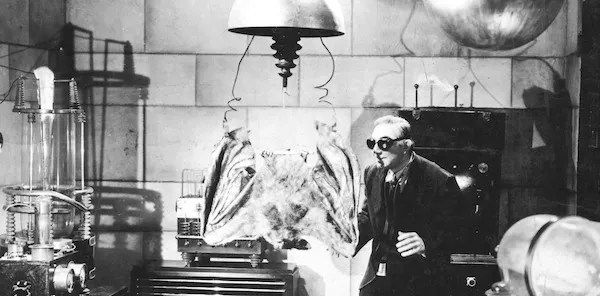 THE DEVIL BAT (1940). One of the most recognizable of Bela Lugosi’s post-Dracula and pre-Ed Wood cheapies that the actor made even as his career had already begun its precipitous plunge, this finds him cast as Dr. Caruthers, believed by everyone in his small town to be a kindly scientist and, more importantly, a doctor who makes house calls. In truth, Caruthers is a madman seeking revenge against the families of the two men he believes cheated him out of the fortune they accumulated from his experiments. To this end, he uses electrical charges to turn a regular bat into an oversized monster that kills anyone who’s wearing Caruthers’ own specially concocted after-shave lotion (one that I imagine smells like Stetson’s Tom Brady fragrance). None of the locals can figure out exactly what’s going on, so it’s up to big-city reporter Johnny Layton (Dave O’Brien), with dim-witted photographer “One-Shot” McGuire (Donald Kerr) in tow, to show up, solve the mystery and save the day. There’s very little to recommend this routine programmer, although it kills 68 minutes efficiently enough; if nothing else, the film does offer the enviable opportunity to hear Lugosi bellow to one of his inferiors, “Imbecile! Bombastic ignoramus!” Incidentally, eagle-eyed viewers might recognize O’Brien as the same actor who played Ralph, the pothead whose addiction lands him in an insane asylum for life in the 1936 camp classic Reefer Madness. It should be noted, though, that O’Brien’s talents extended far beyond merely acting in low-budget efforts: At various points, he was also a director, singer, songwriter, stuntman and Emmy Award-winning writer of The Red Skelton Hour.