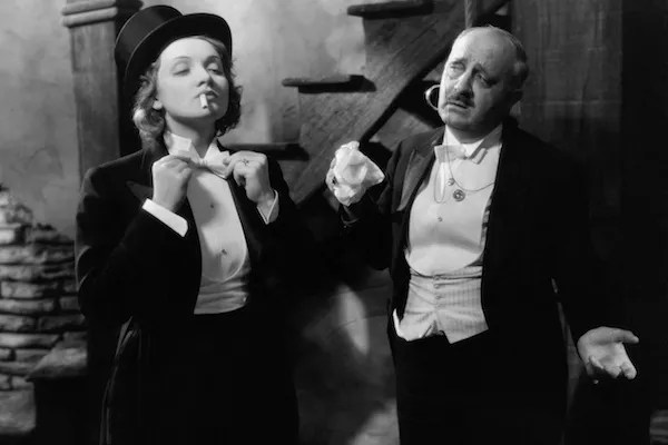 Morocco (1930) earned Dietrich what would be the only Best Actress Oscar nomination of her entire career, with the picture picking up additional nods for von Sternberg’s direction, Lee Garmes’ cinematography and Hans Dreier’s art direction. Dietrich stars as Amy Jolly, a cabaret singer who falls for a dashing Legionnaire (Gary Cooper) while being pursued by a rich older suitor (Adolphe Menjou). The scene in which Amy, dressed as a man, kisses another woman on the lips has become a classic, particularly among Dietrich devotees.