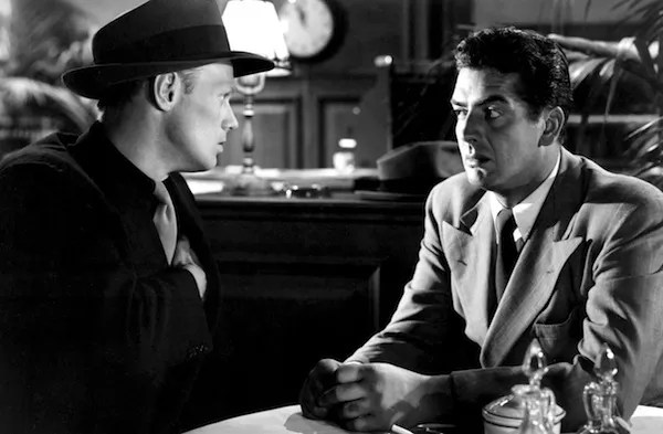 KISS OF DEATH (1947). The most shocking scene in Kiss of Death is so famous that Twilight Time opted to use an image of it on the cover of their new Blu-ray edition. Tommy Udo, a hoodlum who hates “squealers” and “squirts,” giggles maniacally as he pushes a wheelchair-bound woman (Mildred Dunnock) down a flight of stairs. It’s a particularly brutal moment — even for ‘40s film noir — and it turned Richard Widmark (making his film debut, no less) into an overnight star and further earned him an Oscar nomination for Best Supporting Actor. The film’s lead is perennially underrated Victor Mature, here delivering one of his finest performances as Nick Bianco, a small-time crook who refuses to rat on his fellow crooks, even though it means spending time in prison away from his wife and two young daughters. But after his wife commits suicide and the two moppets are sent to an orphanage, Bianco agrees to turn stoolie for a sympathetic assistant D.A. (Brian Donlevy). Lawyer-cum-author Eleazar Lipsky earned an Oscar nom for Best Original Story, although renowned wordsmiths Ben Hecht (Scarface) and Charles Lederer (The Thing from Another World) handled screenplay duties. Kiss of Death was remade in a radically altered form in 1995; that so-so version, starring David Caruso and Nicolas Cage, proved to be a costly flop.