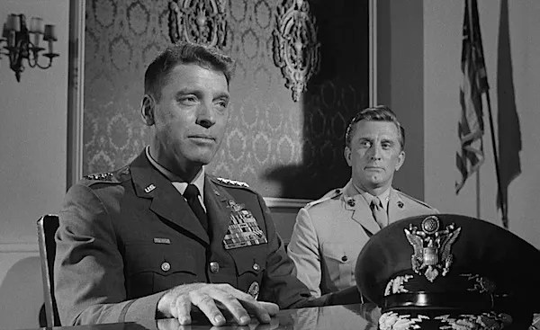 SEVEN DAYS IN MAY (1964). While the prospect of someone staging a coup dโetat against the dangerous and reckless Trump administration currently destroying the nation sounds wonderful, Seven Days in May expertly reveals the disastrous implications were the reverse scenario โ a militaristic right-wing faction overthrowing a progressive government committed to peace โ ever to happen. With an intelligent script by The Twilight Zone creator Rod Serling (adapting the novel by Fletcher Knebel and Charles W. Bailey II) and taut direction from The Manchurian Candidate helmer John Frankenheimer, this finds Fredric March cast as U.S. President Jordan Lyman, whose popularity has plummeted as he seeks to sign a nuclear disarmament treaty with the Soviet Union. General James Mattoon Scott (Burt Lancaster), the head of the Joint Chiefs of Staff, is disgusted by Lymanโs plan and secretly sets into motion a plot to use the nationโs military might to topple the government. One of his officers, Colonel Jiggs Casey (Kirk Douglas), agrees that the treaty is reckless but is horrified at the mounting evidence that his boss might be planning a coup eโtat โ he reveals his suspicions to Lyman, and together they work toward finding concrete proof before itโs too late. The film remains as topical as ever โ Harold McPherson, a rabid right-wing personality played by Hugh Marlowe, is cut from the same chickenhawk cloth as Rush Limbaugh, Sean Hannity et al โ and the stellar cast also includes Ava Gardner as Scottโs former flame, Edmond OโBrien as a liberal Georgia Senator, and an unbilled John Houseman as a crafty naval officer. Seven Days in May earned Oscar nominations for Best Supporting Actor (OโBrien) and Best Black-and-White Art Direction-Set Decoration.