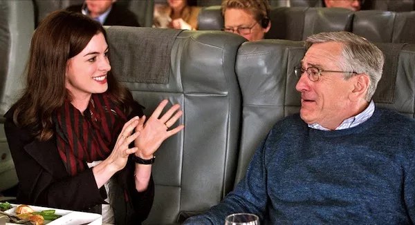 THE INTERN (2015). The latest from writer-director Nancy Meyers stars Robert De Niro as Ben Whittaker, a widower who’s bored with his retirement until he spots an ad for a successful startup company seeking a senior citizen to work as an intern. Landing the job, he’s assigned to serve directly under the company’s founder, a workaholic named Jules Ostin (Anne Hathaway). While Ben’s an immediate hit with everyone else in the office — he’s personable, funny, and full of sound advice — Jules opts to keep her distance, although it isn’t long before he’s broken through her defenses. The deterioration of De Niro’s career has been swift and brutal, the result of too many bald lunges at sizable paychecks. So it’s nice to see him underplaying rather than overacting, delivering a relaxed, sympathetic performance. The film features many humorous moments, several appealing characters and even some subtext about the lunacy of dismissing this nation’s elderly when their value to society still holds some currency. Given all this, it’s a shame the movie isn’t a tad better. Meyers’ greatest flaw is that, as with Woody Allen most of the time, her stories and people exist in a bubble of pampered privilege, and this tends to lead to some rigid narratives with no room for unpredictable happenstances. Worse, the picture features a few embarrassing moments that suggest Meyers allowed her own 20-something intern to try his hand at scripting a couple of pages — witness the sophomoric, out-of-left-field bits involving Ben’s erection. Notwithstanding these limp developments, though, The Intern is dependable enough to earn a modest recommendation.