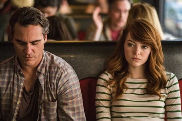 IRRATIONAL MAN (2015). If someone close to you murdered an utterly evil person with no redeeming qualities whatsoever — someone like, say, Rupert Murdoch or Donald Trump — and you were the only person who could send them to jail, would you keep quiet, knowing they probably did the right thing even if it went against all notions of morality, or would you speak up, deciding the law must be upheld at all costs? It’s a great philosophical query — it’s also a sharp hook for a movie, provided the film comes off as more than just a didactic rant. Unfortunately, Woody Allen’s Irrational Man most resembles a college-level term project — appropriate, given its scholastic setting. Joaquin Phoenix plays Abe Lucas, a professor who derives no pleasure out of life. Despite his morose attitude, he proves to be Irresistible Man to the ladies, particularly faculty member Rita (Parker Posey) and student Jill (Emma Stone). But Abe has been rendered impotent by his existential agonizing, a condition that only changes once he overhears strangers discussing a heinous judge overseeing a child custody case. Suddenly, Abe feels that only by committing a perfect murder of an abhorrent individual — and by getting away with it — will he be able to fully enjoy life again. The film becomes a one-sided conversation because Abe is the only one offered any complexity, with Jill and Rita functioning as nothing more than soundboards. Even with dialogue that’s often clunky, fans will want to see this just to watch adults engage in conversations concerning the likes of Dostoyevsky, Heidegger and Kant — it’s the sort of chat one won’t find in something like Pixels, for example. It’s just too bad the film represents one of Allen’s lesser efforts as a ventriloquist. We see the performers’ mouths moving, but all we hear is Allen venting from atop the stool.