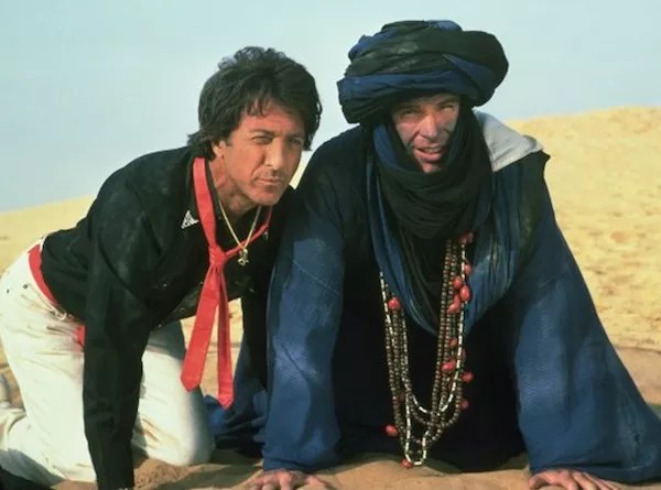 ISHTAR (1987). Writer-director Elaine May’s Ishtar is one of those films that has always made me embarrassed to be a film critic — not because of having to endure the movie itself, but because of the behavior of many of my fellow scribes. Like any decade, the 1980s saw the release of so many truly atrocious films (Xanadu, Stroker Ace, Bolero, Shanghai Surprise, etc.) that it’s absurd “Ishtar” became shorthand for the worst of the worst and continues to be blasted by folks who haven’t even seen it. (Side note: The Far Side cartoonist Gary Larson had, like many others bashing the film, never even seen it when he drew a panel showing that this was the only movie available in Hell’s video store; he later caught the film, greatly enjoyed it, and subsequently apologized for the cartoon.) It was apparent then, and it’s become even more apparent with the passing of time, that the movie was reviewed for its exorbitant budget more than anything actually on screen. The picture cost a then-hefty $40 million (which these days probably wouldn’t even cover the catering costs on a Michael Bay production), and this price tag, coupled with a paltry $14 million gross, left film reviewers and industry insiders sputtering at the waste of so much money. Clearly, the film isn’t a total success — and, yes, it doesn’t look like it should have cost $40 million — but those who actually bother to see it will discover some very funny material within. Warren Beatty and Dustin Hoffman star as Lyle Rogers and Chuck Clarke, a pair of abysmal singer-songwriters (their deliberately awful songs were penned by May and Paul Williams) who figure that the only difference between them and Simon & Garfunkel is their lack of an agent. So they hire Marty Freed (Jack Weston), who books them at a Moroccan nightclub; that benign assignment leads to them being mistaken for CIA agents, and they’re soon on the run from all manner of assassins. It’s a nice touch having Hoffman play the suave lady-killer and Beatty the bumbling introvert, and there’s a choice supporting turn from Charles Grodin as a duplicitous CIA suit. Patterning itself after the Bob Hope-Bing Crosby Road movies, the film experiences more than its share of lulls, and Isabelle Adjani is largely wasted as a sympathetic freedom fighter. But the film contains many bright set pieces (the blind camel, the arms trading scene, etc.), and May’s script is actually very pointed — and accurate — in examining the shady way that the U.S. conducts its affairs abroad.