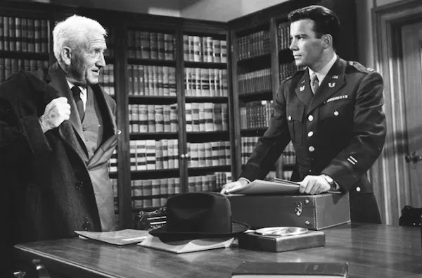 INHERIT THE WIND (1960). Stanley Kramer, known primarily as the producer-director of sterling, socially conscious films, is behind this still-relevant drama which has its roots in an actual historical event: the infamous Scopes Monkey Trial of 1925, when a school teacher was arrested for teaching Darwin’s theories of evolution in his Tennessee classroom. Spencer Tracy plays the liberal Clarence Darrow stand-in who defends the young instructor (Dick York), while Fredric March provides the fire and brimstone as the evangelical William Jennings Bryan-inspired prosecutor. Then there’s Gene Kelly, cast against type as the H.L. Mencken proxy, the cynical newspaperman whose zingers include this beauty hurled at March’s prosecutor: “He’s the only man I know who can strut while sitting down.” Inherit the Wind nabbed four Academy Award nominations, including bids for Best Adapted Screenplay and Best Actor for Tracy. Of his seventh nomination (with two more yet to come), the no-nonsense star quipped in his typically dismissive style, “I need another award like I need 10 pounds.”