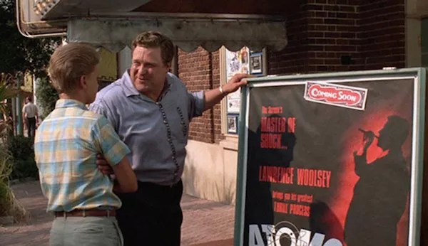 MATINEE (1993). One of director Joe Danteโs finest achievements, Matinee expertly juxtaposes the real-life horror of October 1962 โ namely, the Cuban Missile Crisis โ with a reel-life one โ in this case, Mant, a B-flick about a half-man, half-ant creature. John Goodman is wonderful as Lawrence Woolsey, a garrulous filmmaker who promotes his movies with outrageous gimmicks (the character was based on the legendary William Castle). With his leading lady (Cathy Moriarty) in tow, he arrives in Key West to promote Mant, hoping that the localsโ fears of nuclear annihilation will get channeled into enthusiasm for his decidedly less threatening movie. Meanwhile, the new kid in town (Simon Fenton), a hardcore monster-movie fan (cue shots of the influential Famous Monsters of Filmland being read), divides his time between hanging out with his new friends and receiving valuable life lessons from Woolsey. Dante and scripters Jerico and Charlie Haas clearly know their way around this period, and they pack their film with savory nuggets on both the pop-culture and political fronts. Character actor Dick Miller and noted writer-director John Sayles โ like Dante, former Roger Corman employees โ are amusing as a pair of rabble rousers, and thereโs a hilarious swipe at the inane live-action Disney movies of the era (and, yes, thatโs Naomi Watts in the film-within-the-film The Shook Up Shopping Cart).