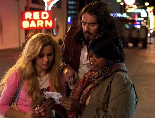 Julianne Hough, about as bland here as in Rock of Ages, stars as Lamb Mannerheim, a devout Christian who has recently survived a plane crash. With burns all over most of her body (but, conveniently, not her face, as Cody doesn’t want to make viewers uncomfortable), the home-schooled and extremely sheltered Lamb stands at the podium of her Montana church and declares to the stunned congregation that she no longer believes in God, drawing audible gasps when she follows that tidbit with the added info that “in the next election, I might even vote Democrat!” Leaving her flabbergasted parents (Holly Hunter and Nick Offerman) behind, she takes off for Las Vegas, where she hopes to partake in all manner of sin. But once she arrives in the big, bad city, she goes from being a potential Lamb for the slaughter to a Lamb that’s constantly shepherded (Cody’s script ain’t exactly subtle), as she becomes friends with William (Russell Brand) and Loray (Octavia Spencer), industry-service workers who apparently have nothing better to do than tend to this lost Lamb at every turn.