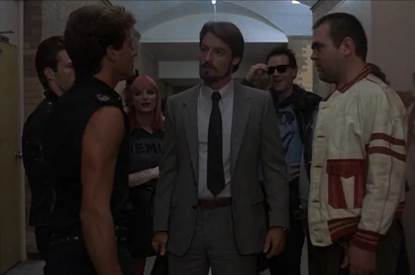 CLASS OF 1984 (1982). This effective exploitation flick opens with the words, “Last year, there were 280,000 incidents of violence by students against teachers and their classmates in American high schools. Unfortunately, this film is based on true events. Fortunately, very few schools are like Lincoln High … yet.” In other words, what seem slightly farfetched in 1982 has proven to be the norm in 2015, a sad commentary on this nation’s increasingly wretched educational system (and growing even worse with the insane right-wing agenda of legally allowing more guns in schools). Basically an unofficial remake of 1955’s potent Blackboard Jungle, this stars Perry King as Andrew Norris, a music teacher who arrives at an inner-city school ready to teach and inspire. Instead, he learns that the school is nothing less than a war zone, and that the leader of the worst gang is a smart but vicious punk named Peter Stegman (Timothy Van Patten). Norris soon discovers that going the saintly Sidney Poitier/To Sir, With Love route isn’t an option, and that he’ll need to use his fists rather than his compassion to deal with Stegman and his psychotic sycophants. Director-coscripter Mark Lester films this for maximum cathartic impact, tapping into viewers’ thirst for justice and revenge against these disreputable brats as thoroughly as the filmmakers behind such eye-for-an-eye yarns as Death Wish and The Crow or, more recently, The Equalizer and any given Liam Neeson programmer. Roddy McDowall steals the film as Terry Corrigan, a chipper yet cautious biology teacher who eventually snaps, and that’s a chubby, pre-Family Ties Michael J. Fox (billed here as simply Michael Fox) as Arthur, one of Norris’ good (read: law-abiding) students. Lester followed this with the limp 1990 sequel-of-sorts Class of 1999, in which violent students square off against robot teachers!