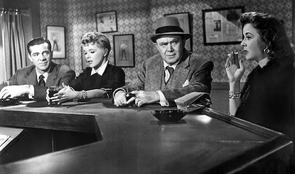 Dana Andrews, Sally Forrest, Thomas Mitchell and Ida Lupino in While the City Sleeps (Photo: Warner)