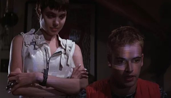 HACKERS (1995). In a manner similar to that of 1982’s Tron predating the obsession for CGI in entertainment, so did 1995’s Hackers offer an early peek at the online world shortly before the global explosion of the Internet. But the comparison doesn’t end there, as both films find that even their cutting-edge ideas can’t quite compensate for a banal storyline. Jonny Lee Miller and Angelina Jolie landed their first significant screen roles in Hackers, respectively playing Dade (aka Zero Cool, aka Crash Override) and Kate (aka Acid Burn). They’re high school students who, along with their hacker buddies Cereal Killer (Matthew Lillard, in the first of his countless roles as an insufferable sidekick), Lord Nikon (Laurence Mason), The Phantom Phreak (Renoly Santiago) and the handle-less Joey (Jesse Bradford), are framed for a cybercrime by The Plague (Fisher Stevens), a computer security expert attempting to create a distraction from his own embezzling scheme. A flop upon its initial release, the film has achieved ever-so-slight cult status thanks to its working knowledge of computer technology (several real-life hackers served as consultants), its engaging effects (most created without CGI) and a pulsating soundtrack. But the heroes remain hopelessly bland, while Stevens’ master villain exudes about as much menace as a pampered poodle.