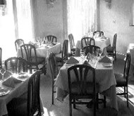 The brief menu changes three times a year, and there are several specials offered on a daily basis. The menu flows from “Carpaccio with baby greens, shaved Parmesan, and truffle oil” to “Homemade ricotta and spinach ravioli”; from “Sliced buffalo mozzarella, tomato and basil salad” to “Osso buco.” The daily specials here are actually special. One well-composed salad had thinly sliced beets as a base for arugula and gorgonzola surrounded by dots of aged balsamic.