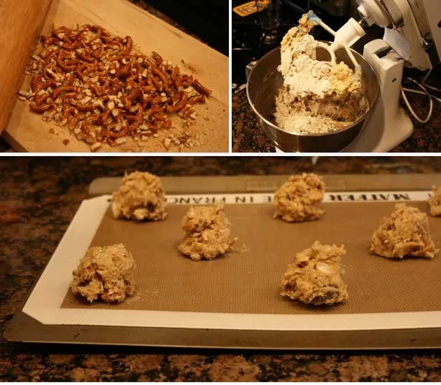Momofuku Milk Bar, a bakery in NYC, makes cookies called Compost Cookies which are made with potato chips, pretzels, used coffee grounds and more goodies. These crazy cookies have a cult following on food blogs everywhere. After doing some research, I decided that I must try my hand at these ridiculous cookies.