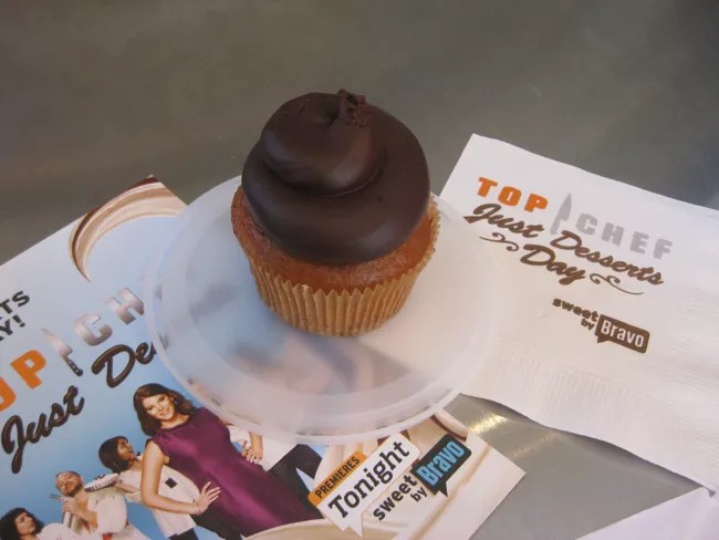 I snagged my free Boston Cream Cupcake from Something Classic Uptown this afternoon. The cupcake giveaway was part of Bravo’s celebration of their premiere of Top Chef Just Desserts, which airs tonight.