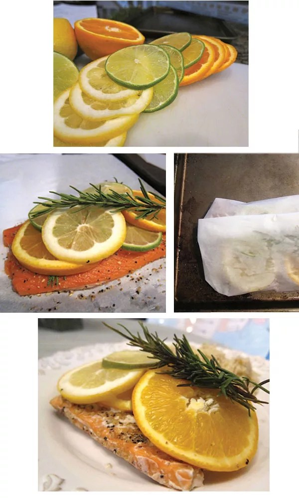 My dear friend Betsy made an amazing recipe (for her, at least) for salmon that uses a parchment packet and fresh citrus fruit. The way she described it sounded so good, I demanded the recipe for this so-called Citrus Salmon in Parchment.
