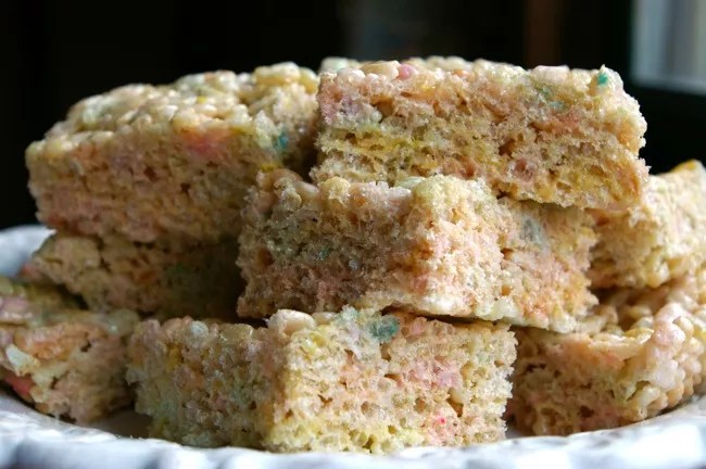 These are definitely better than plain Rice Krispie Treats. Anything rainbow-colored tastes better, right?