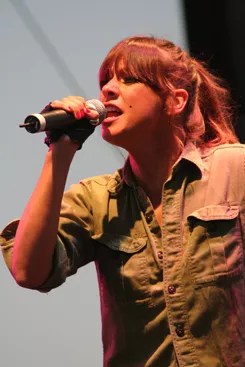 Brazilian Girls followed Tea Leaf Green. Singer Sabina Sciubba came out wearing some kind of odd wool rabbit suit on her top half. Not surprisingly, she complaint was too hot and took it off after the first song.
