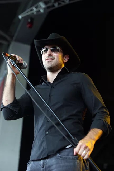 Jamey Johnson hit the stage a bit late and appeared to be frustrated with a cast on his right/strumming hand. His music harkens back to an older style of country in the vein of Merle Haggard.