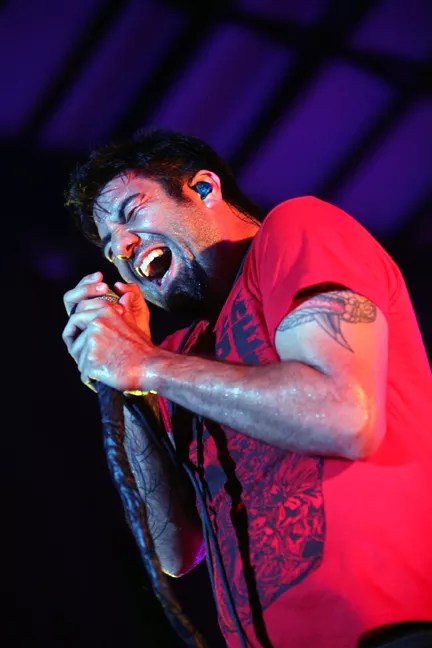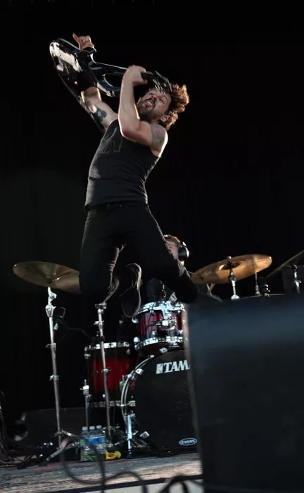 Dillinger Escape Plan was up next and made use of the entire stage, including a railing going down one side of the crowd. The band is known for its manic energy on stage and found ways to jump on and off just about everything they could get their feet on.