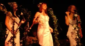 The Good: The band’s equipment, including microphone stands, were decked out with ivy for a nature feel. Mediaeval Baebes started its set with each of the six female members of the band wearing white, wavy dresses. Later they would change to red dresses and then, even later, to black. Behind them were three men who played guitar, drums and other instruments. The music was soothing, but the real treat was the bands melodic vocal harmonies. They sang in Middle English, Medieval Latin and Spanish while dancing and some of the gals played the flute, fiddle and tambourines too. Between songs, many of which came from their latest album, Illumination (Blacksmiths, Miracle, Undivided and more), the group recited poetry. It was an interesting and impressive show that was different than any other show Ive ever seen at Tremont Music Hall. Mediaeval Baebes sang beautifully and the music accompanying them was relaxing.