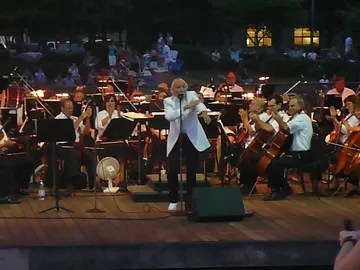 Last night was Summer Pops Latin night. The guy on the cello was festive in his Sombrero. Meanwhile the conductor that looked like Einstein in Air Force Ones made the entire crowd stand-up and do the “Marcerena” to a song that sounded more like Lionel Ritchies All Night Long. But we all went with it. And he conducted the dance like so: head-head-tush tush.