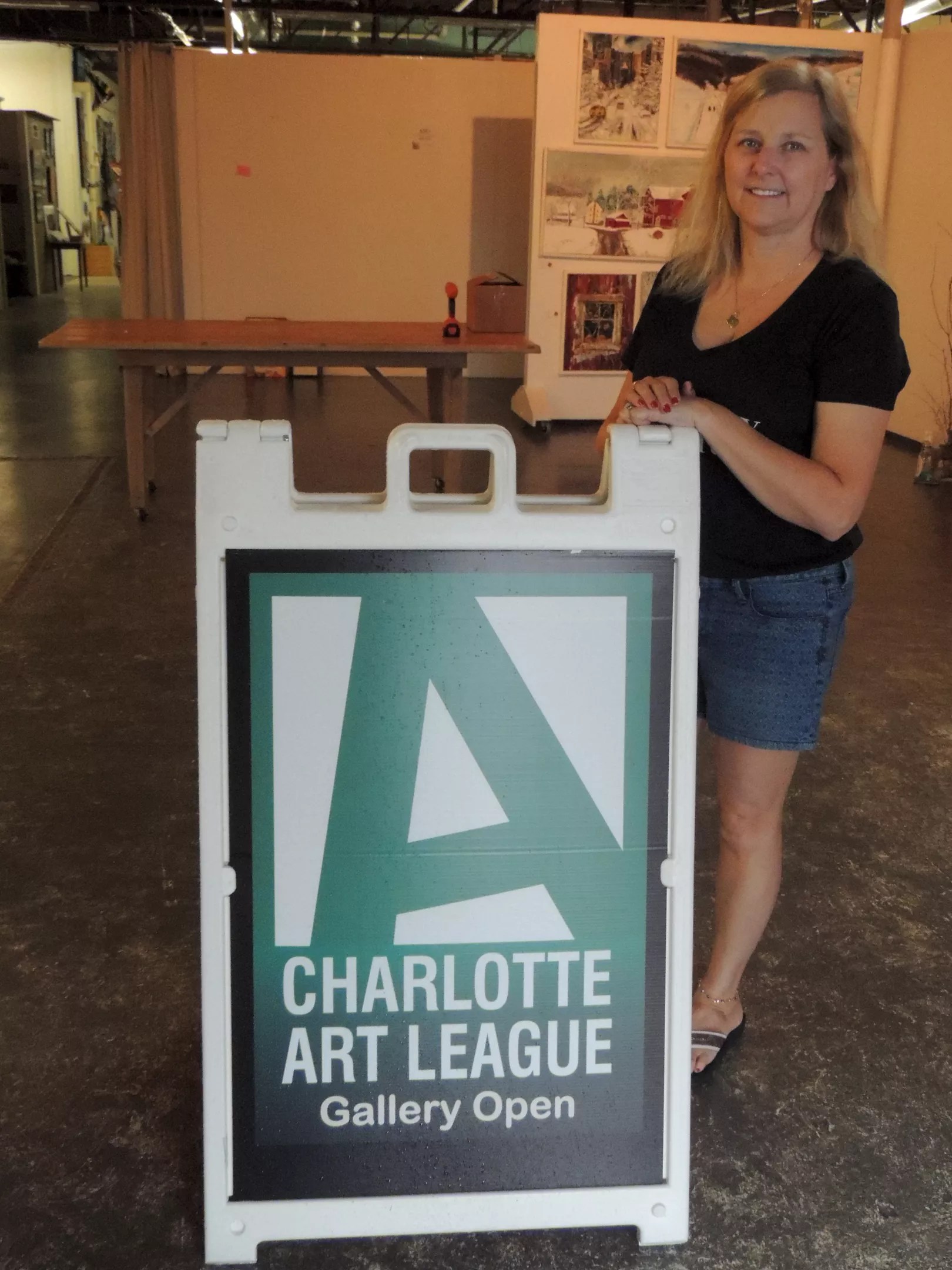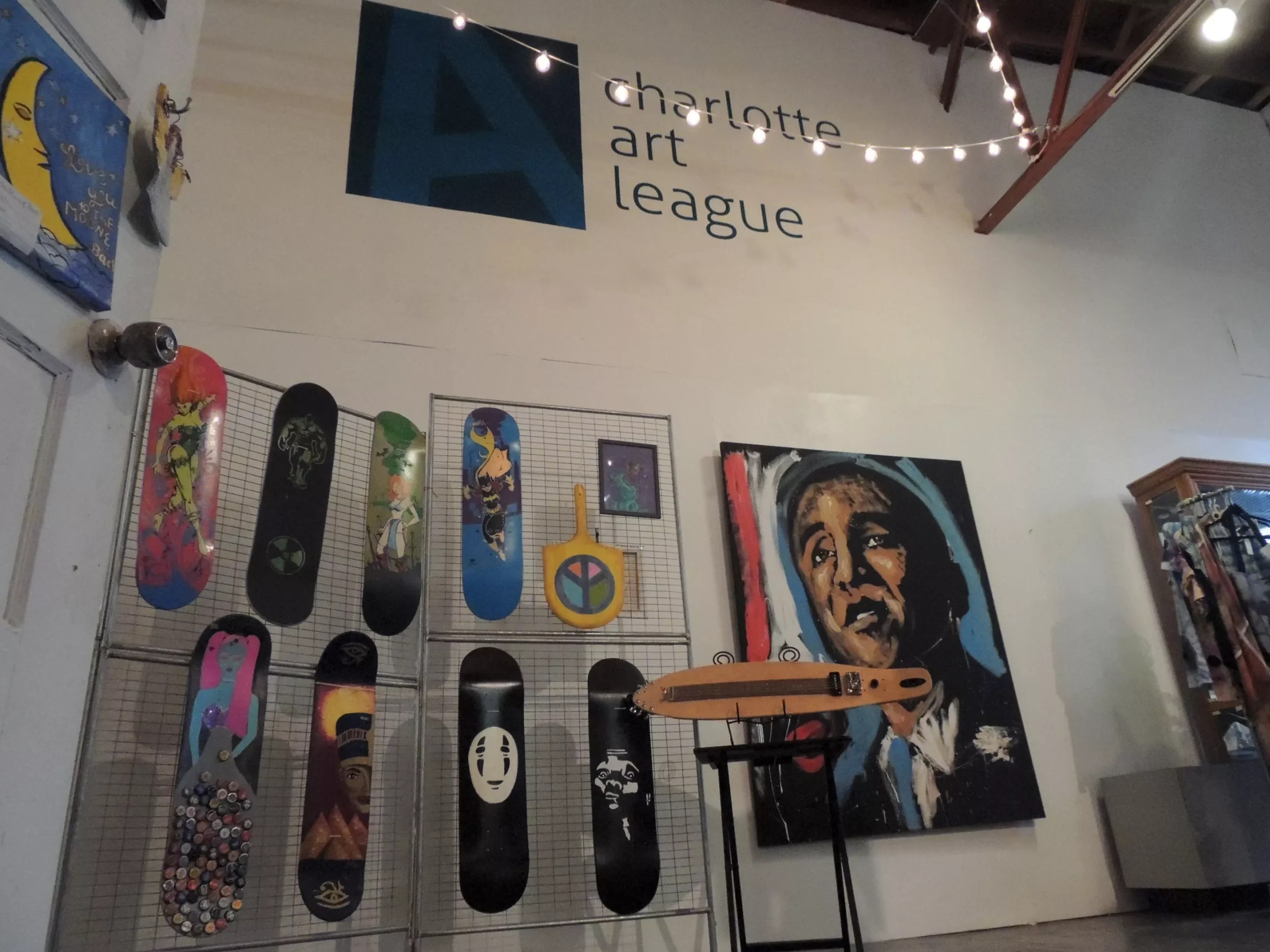 On a recent Thursday afternoon, the scene outside Charlotte Art League was glum. Rain clouds promised to spoil the Panthers’ last preseason game later that night, but for now were content to dump a steady drizzle on the Camden Road construction site across from the building, creating a pit of mud where Common Market and Black Sheep Skate Shop once stood.