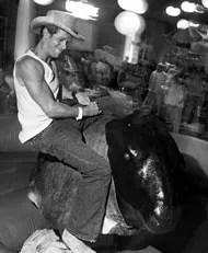 Deciding that mechanized animals might behave more suitably, I decided to check out the mechanical bull — strange things, these contraptions, especially when combined with abundant testosterone and alkeehawl. Poll 10 guys on the street. Ask them how many of them would like to get on a contraption that will, with 100 percent certainty, throw them to the ground and rudely rack their cue balls in the process. How many takers do you think you’d get? Zero. Fun to watch? Certainly. The whole thing was made more fun by the man running the contraption, who seemed to take delight in cranking up the juice whenever a muscle-bound and/or yuppie type took the reins. Allow a pretty young lady to try her hand, however, and the bull moved so gently and sensuously you’d think Marvin Gaye programmed it.