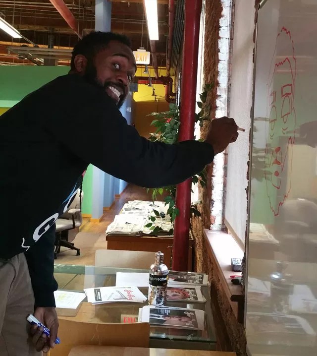 Long before Thompson decided to pursue art full time, he was already using it to get his message across. “When I was younger, I had a stutter. I could not talk. I couldn’t ask for milk, cookies or whatever it was. So, when I got to kindergarten, they just kept giving me pencils and markers. It was easier for me to draw out what I needed versus me telling people what I needed because it got frustrating.”