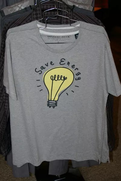 Organic clothing isn’t hard to find at all. Here’s a men’s T-shirt by FCUK spotted at Boris & Natasha ($42).
