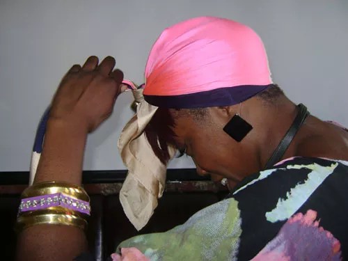 On the day of the interview, Estelle was wearing a beautiful, silk, multicolored scarf on her head, and who but me would ask her to show me how it’s tied? She graciously obliged and talked freely and very excitedly, if I might add, about fashion.