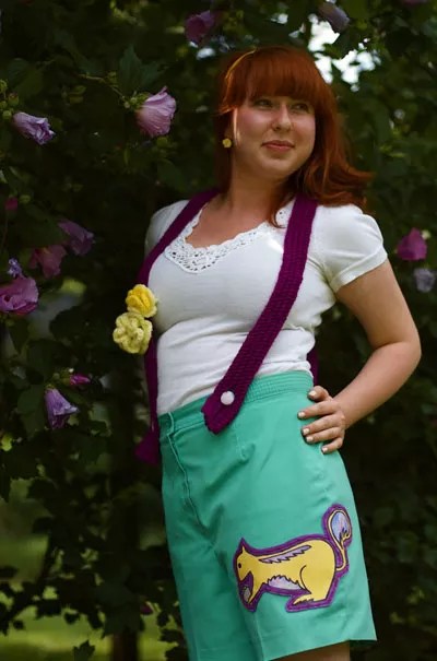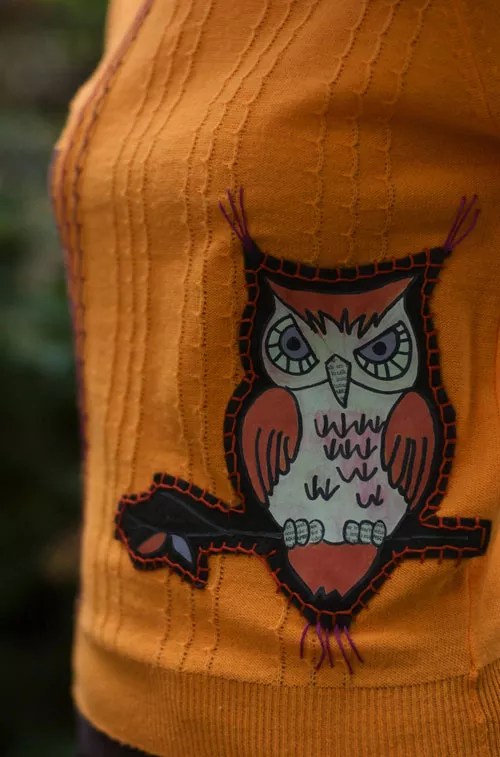 Odetta sounds like a pretty cool chick, doesnt she? Well, actually, Odetta is an animal image, an owl to be precise, created by local clothing designer Amanda Aileen for her clothing line Inhabit. This redesigned vintage collection is comprised of one-of-a-kind, original pieces made using recycled materials such as vintage clothing and scrap fabrics and accented with embroidery and different types of stitching. The animal image, created using watercolor, acrylic and newspaper, is the anchor of the line.